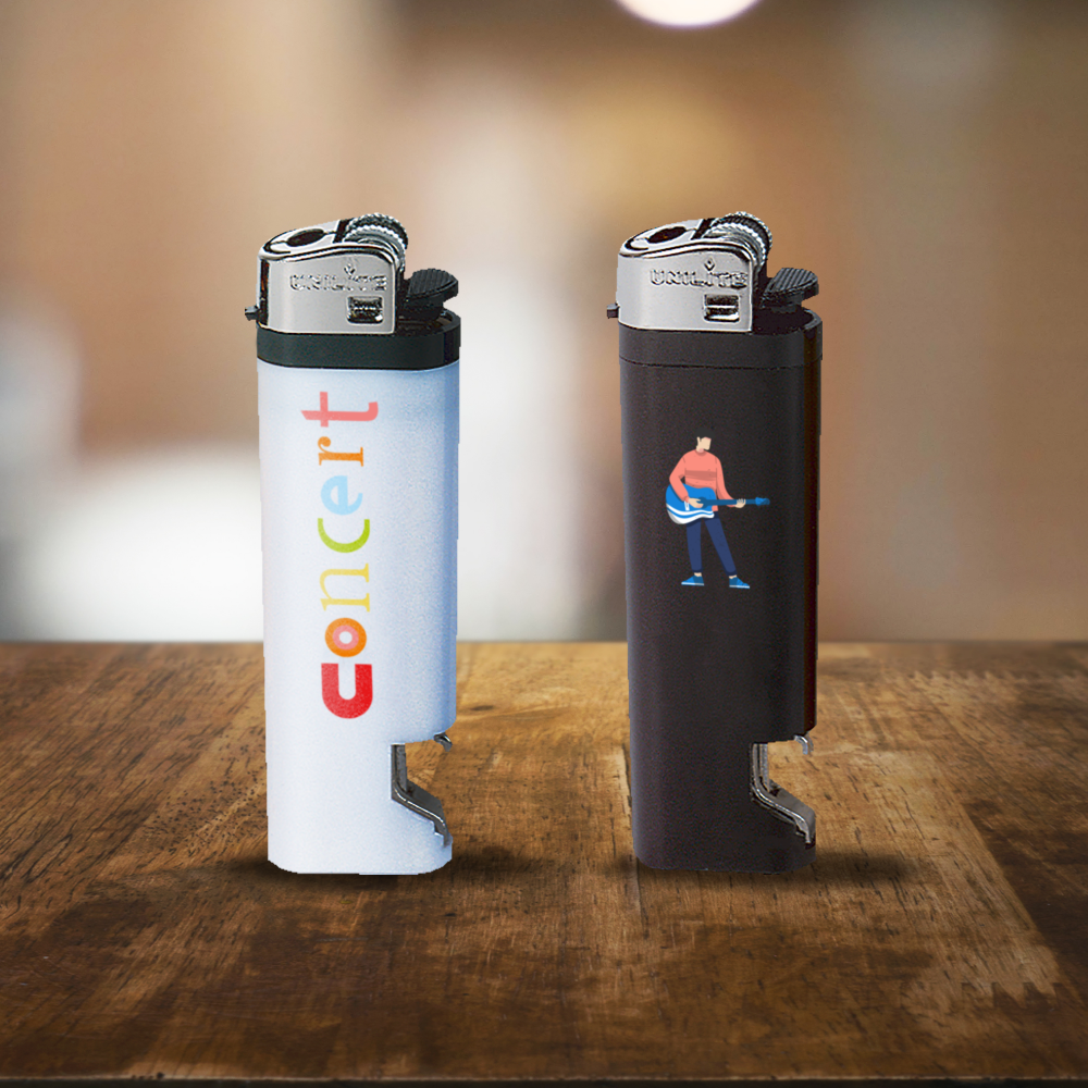 A handy 2-in-1 lighter with an extra function: you can open a bottle with it! Bottle Opener Lighters have child-proof mechanisms and meets the current safety standards too, so you know you are safe with them. Choose to print your logo or design on one side or both and order today!