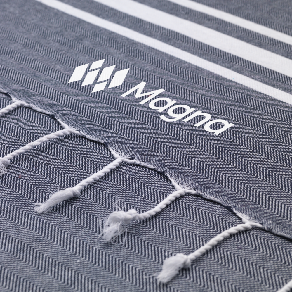 Made from 50% Oekotex certified cotton and 50% recycled industrial textile waste and fabrics, Helloprint API's Luxury Hammam Towel shows you don't have to compromise on luxury to be eco-conscious! The cloth itself has a soft and luxurious feel, with a cool stripe pattern. Sized at 180 x 100 cm, it is multifunctional! Ideal to use as a towel, a beach blanket or for picnics on warm summer days. Choose from a range of colours and personalise with your unique logo or design! <br><br>