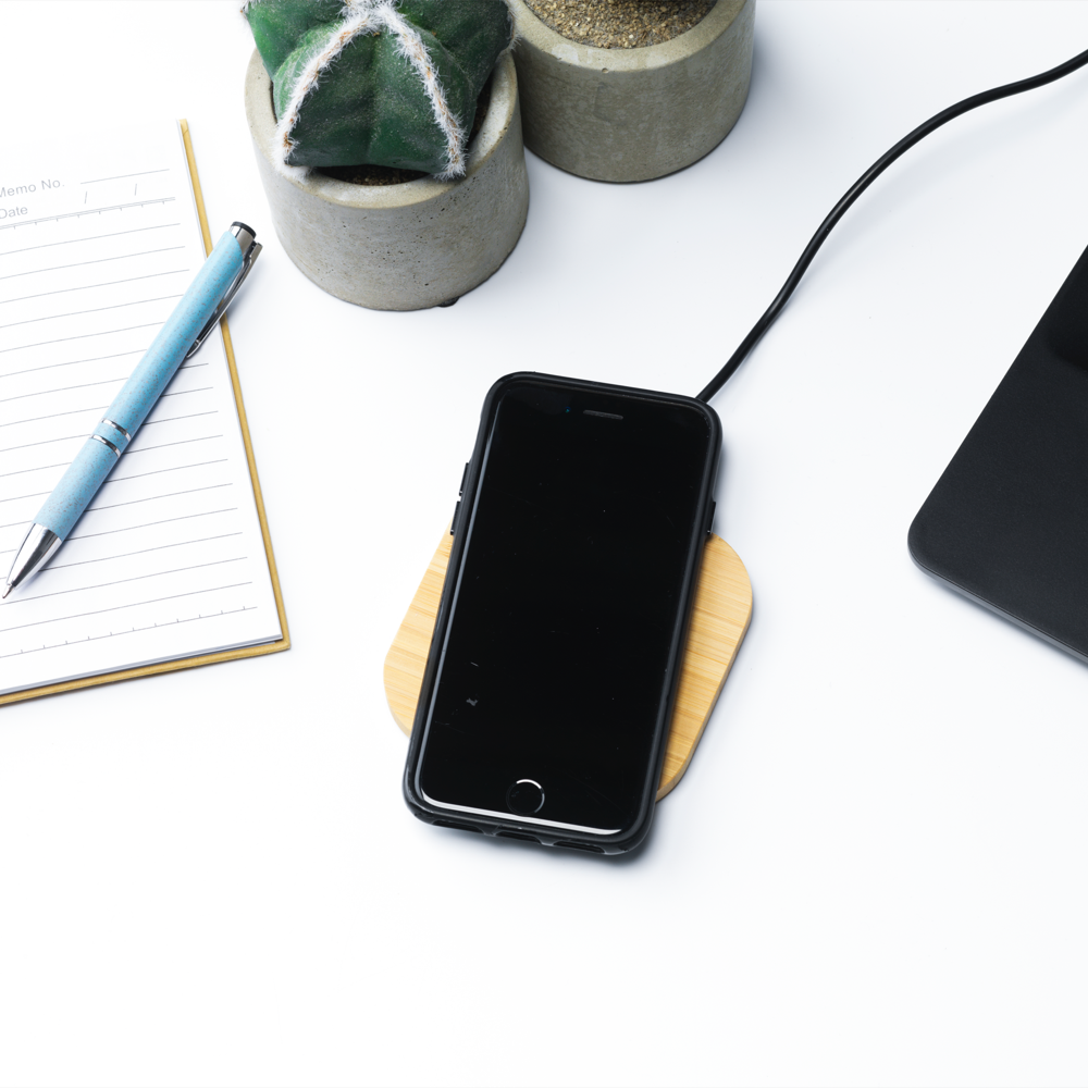 Helloprint API's Wireless Charger Bamboo is not only practical but also made from ecologically responsible bamboo! Personlise the 5W charger with your unique logo or design and it's a perfect gift for your employees, family, or friends. Wireless Charger Bamboo is compatible with all mobile phones that support QI wireless charging. So, what are you waiting for? Everyone needs a charger!
